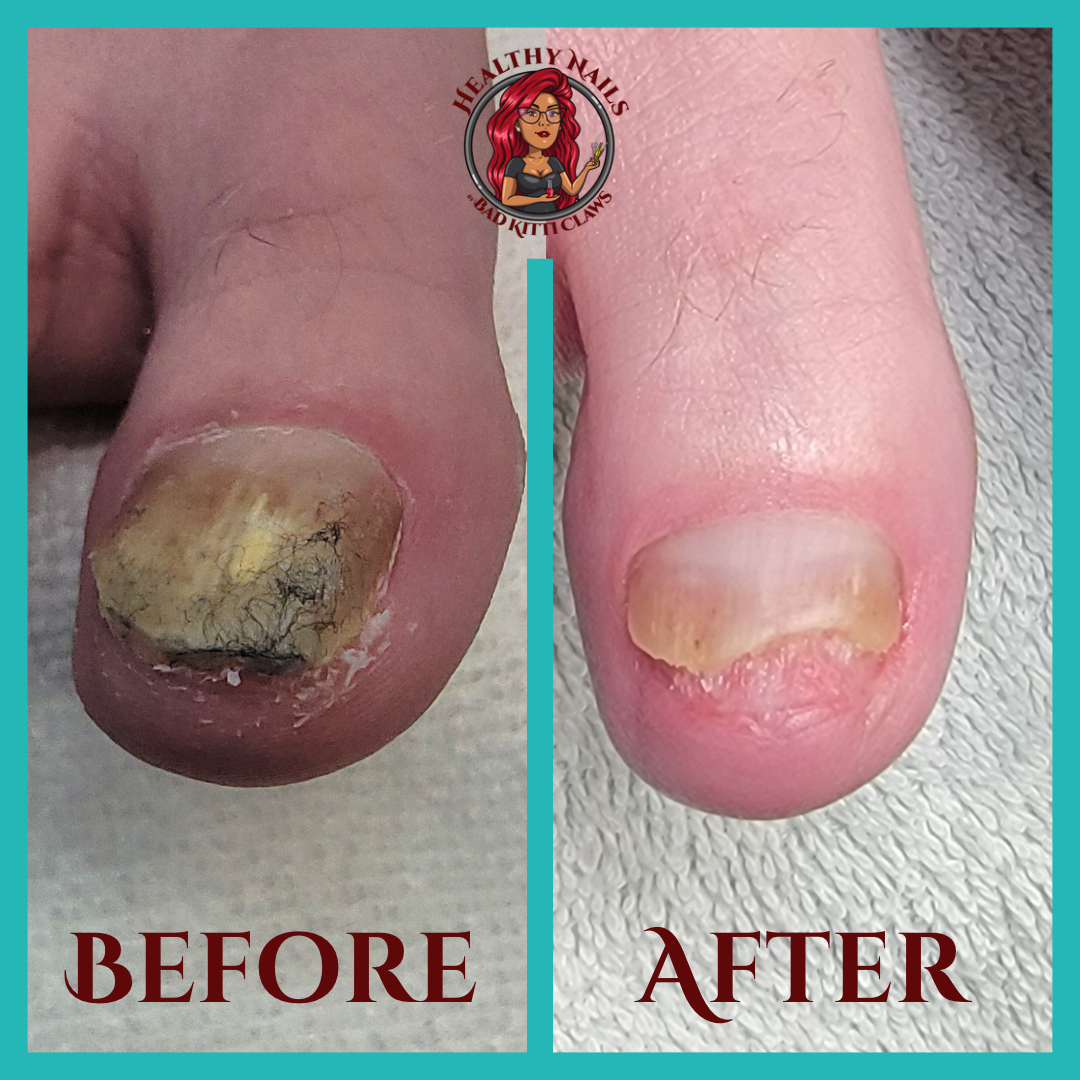 Pictured here is a client after three services, where you can see the natural nail growth showing visible improvement in cosmetic appearance.