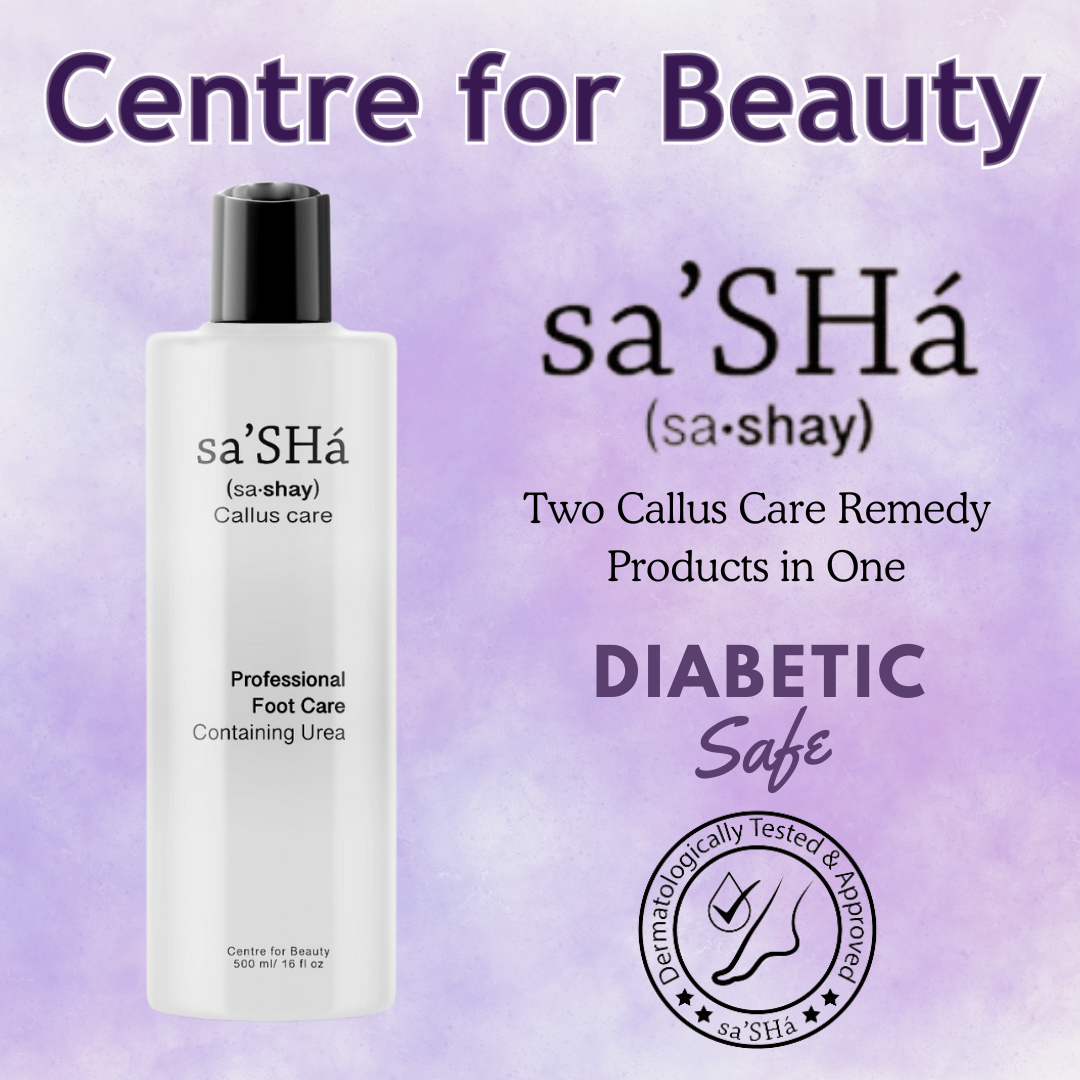 sa’SHá is used in our pedicure services as part of our callus‑softening and cuticle care protocol. Formulated with moisturizing ingredients such as urea and glycerin, it helps hydrate and soften the skin and reduce buildup of dead skin cells for a smoother cosmetic finish.