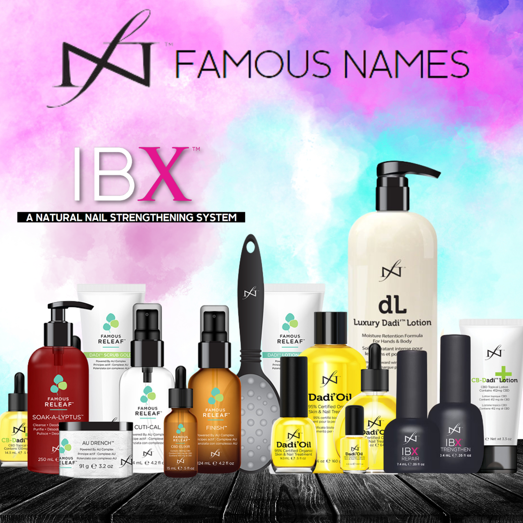 Healthy Nails uses award‑winning Famous Names Dadi’ Oil in all manicures and pedicures. We also offer IBX system and carry a curated selection of Famous Names retail items in the salon and online, including Dadi’ Oil and several body care items.
