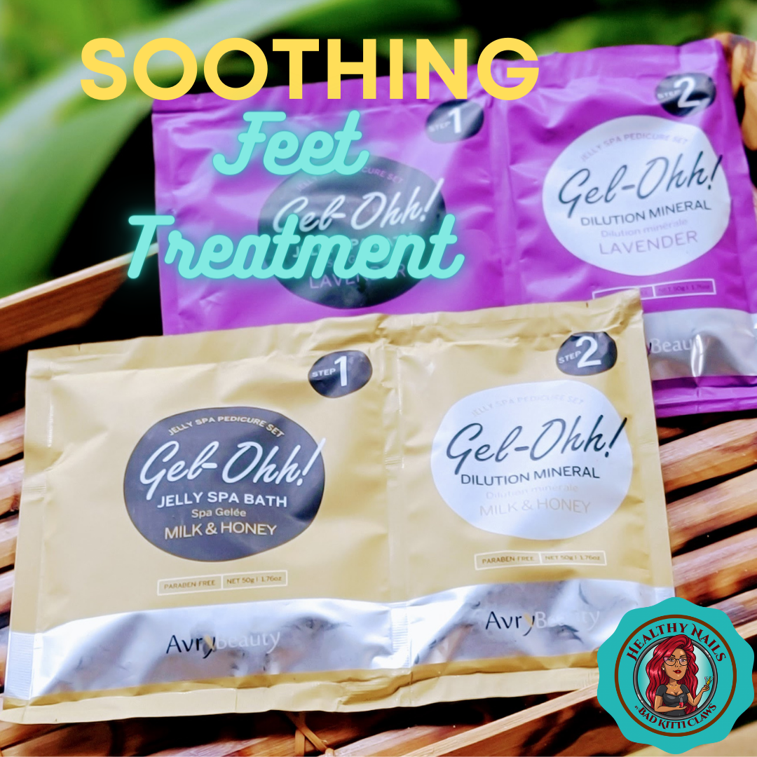 A luxurious and fun upgrade to any pedicure service. Gel-Ohh! from Avry Beauty turns your foot bath into a warm, smooth, hydrating gel soak for your feet to enjoy. Relax and let this unique sensation soothe your feet during your pedicure service. Gel-Ohh! comes in a variety of different scents for you to choose from. And, when you're done, we turn the gel back into water like magic to rinse your feet and legs.